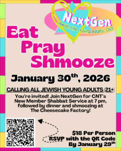 CNT creates opportunities for the young adults of the Las Vegas Jewish community to come together in a relaxed and open environment. Offering both spiritual and social events, NextGen is the next big thing in the Las Vegas Jewish scene. NextGen plans and promotes social activities, cultural programs such as holiday celebrations, and takes part in community events. NextGen is for all young adults, ages 21-40(ish). Bring friends, colleagues, significant others, or come alone and meet new people! Whether you are a Temple member or not, it does not matter, everyone is welcome to participate in this program.