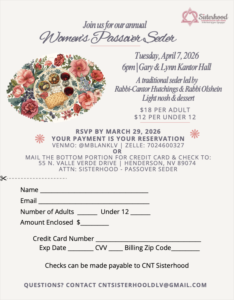 CNT Sisterhood offers something for every woman and extends the hand of friendship to all. Together, as women, we embrace our heritage, foster mitzvot, serve congregants, support Temple and youth activities, promote camaraderie, and celebrate and support one another. Sisterhood members are welcome to attend any Board Meeting. The meetings are held at CNT at 6:30 pm on the second Thursday of the month. For more information, contact Michelle Blank at cntsisterhoodlv@gmail.com.