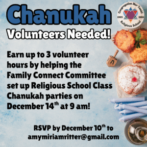 At CNT Religious School, our goal is to have all of our families be an active part of the school community. This can be done in many different ways, including joining the Family Connect Committee or volunteering your time. See below for how you can get involved!