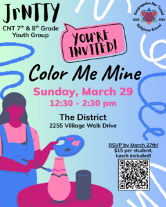 CNT has a variety of youth groups to provide our students with social opportunities throughout the year. Our youth group programming fosters the love of Jewish community within our students and is a vital part of their Religious School education. See below for the different youth groups available to each grade level!