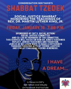 SHABBAT TZEDEK: SOCIAL JUSTICE SHABBAT HONORING THE TEACHINGS OF REV. DR. MARTIN LUTHER KING, JR.
