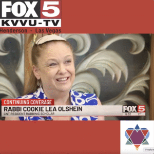 THANKS TO KVVU-TV FOX5’s Evan Leake and his videographer for spending the evening at Congregation Ner Tamid, on Tuesday, October 14, to cover our Simchat Torah Service and Celebration and special Hostage Release ceremony. The FOX news affiliate featured CNT throughout its 5:00 p.m., 5:30 p.m., and 6:00 p.m. broadcasts. Later news segments in the 6:30 p.m. and 7:00 p.m. newscasts included an interview with CNT’s Resident Rabbinic Scholar Rabbi Cookie Lea Olshein.