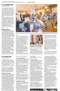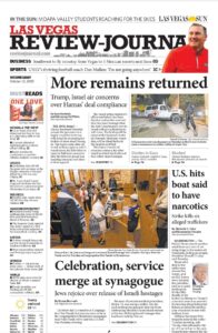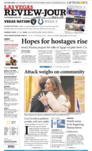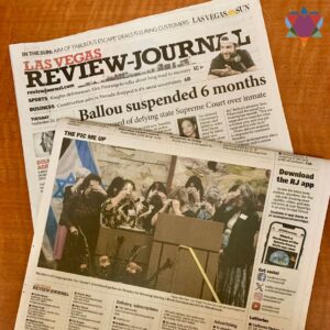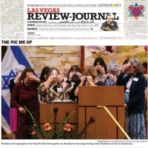 CNT IS FRONT PAGE NEWS! Thanks to The Las Vegas Review-Journal’s Bryan Horwath and photographer Chase Stevens for spending the evening at Congregation Ner Tamid, on Tuesday, October 14, to cover our Simchat Torah Service and Celebration and special Hostage Release ceremony.