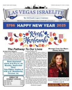 THANKS TO LAS VEGAS REVIEW-JOURNAL photographer Chase Stevens for featuring Congregation Ner Tamid’s Erev Rosh Hashanah Services in the paper on Tuesday, September 23, on Page 3A. Members of CNT’s Sisterhood were photographed on the bimah offering blessings over candlelight.