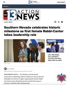 THANKS TO ABC13 KTNV’s (ABC) Tricia Kean for her TV news segment, “Southern Nevada Celebrates Historic Milestone As First Female Rabbi-Cantor Takes Leadership Role,” about Congregation Ner Tamid’s Installation Shabbat on Friday, December 12.