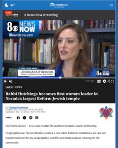 THANKS TO 8 NEWS NOW KLAS-TV (CBS)’s Kamari Esquerra for showcasing Congregation Ner Tamid’s Installation Shabbat in her news segment “Rabbi Hutchings Becomes First Woman Leader In Nevada’s Largest Reform Jewish Temple.” Plus, Rabbi Hutchings also addresses the Chanukah terror attack at Bondi Beach in Sydney, Australia.