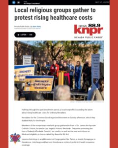 THANKS TO Nevada Public Radio’s (KNPR) Anne David for highlighting Congregation Ner Tamid’s Rabbi-Cantor Jessica Hutchings’ participation in the Nevadans For The Common Good’s “Rally for the People,” at St. James the Apostle Church, on Sunday, December 7.