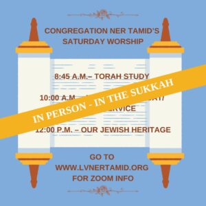 10:00 a.m. – SHABBAT MORNING WORSHIP – IN THE SUKKAH